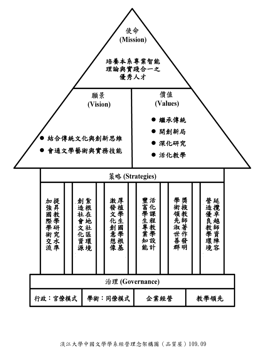 民國77年(1988年)成立碩士班,創所所長為龔鵬程先生,龔先生運籌擘畫,務求開創新格局,建構一所新的中文所期勉,以確立文學、社會與美學的教學研究發展主軸,在中文學界首開「文藝行政與文學社會學」、「文學的斷代研究」、「辭彙學」、「世界漢學」等課程,並配合「文學與美學」、「社會與文化」兩大國際研討會,以文會友,奠定淡江中文系的學術聲望。